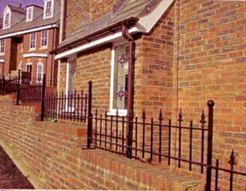 Westminster spear but incorporating an extra rail. Ideal around balconies or wherever safety is a consideration. £50 per metre or galvanised for £65 per metre.