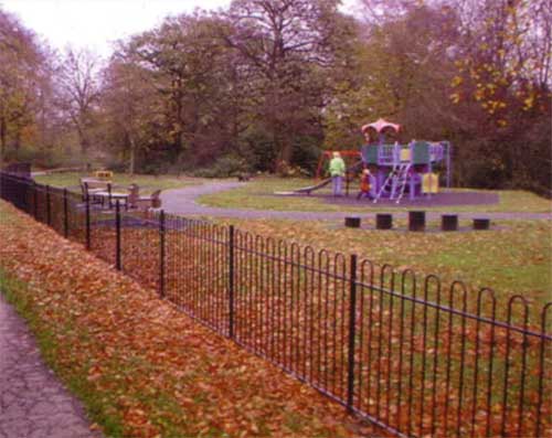 Hooped top railings. Designed for safe play areas like this park, or anywhere a blunt topped alternative may be required.
